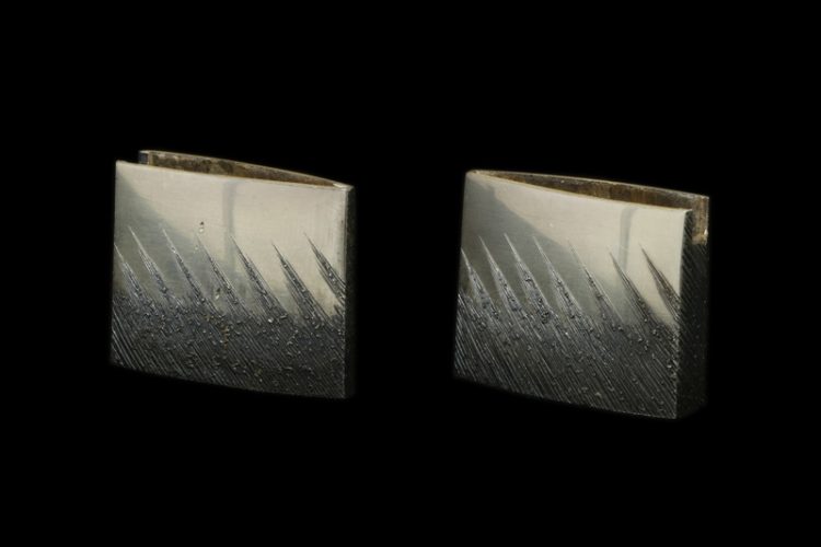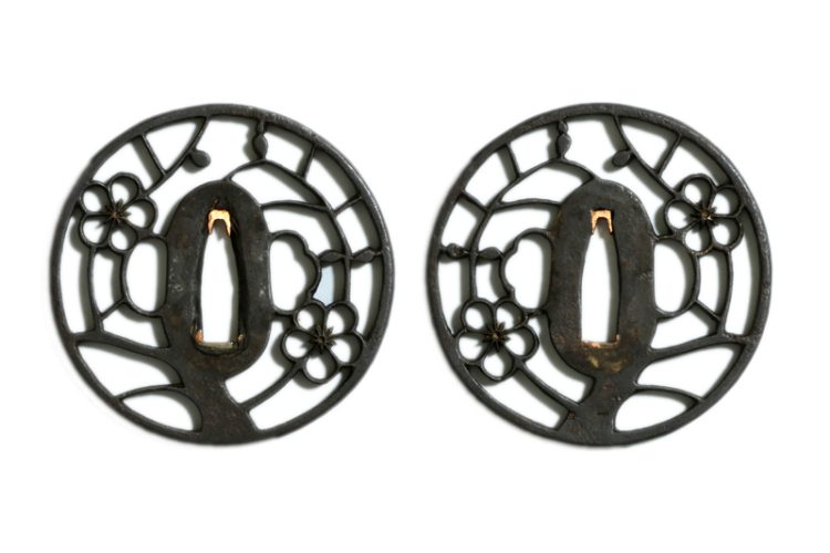 縁頭(futikasira):鉄地梅の図銀象嵌。