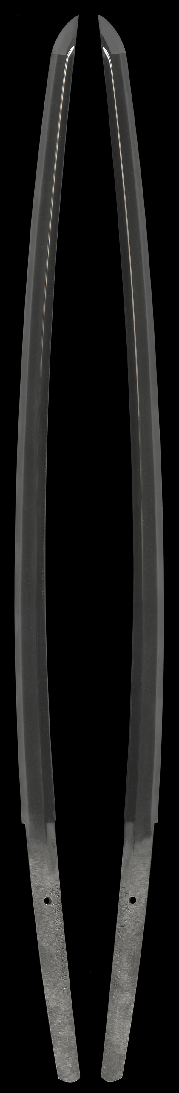 鎬造り庵棟、身幅尋常重やや薄く、鳥居反り中鋒。茎は生で切鑢がかかる、茎尻は栗尻。