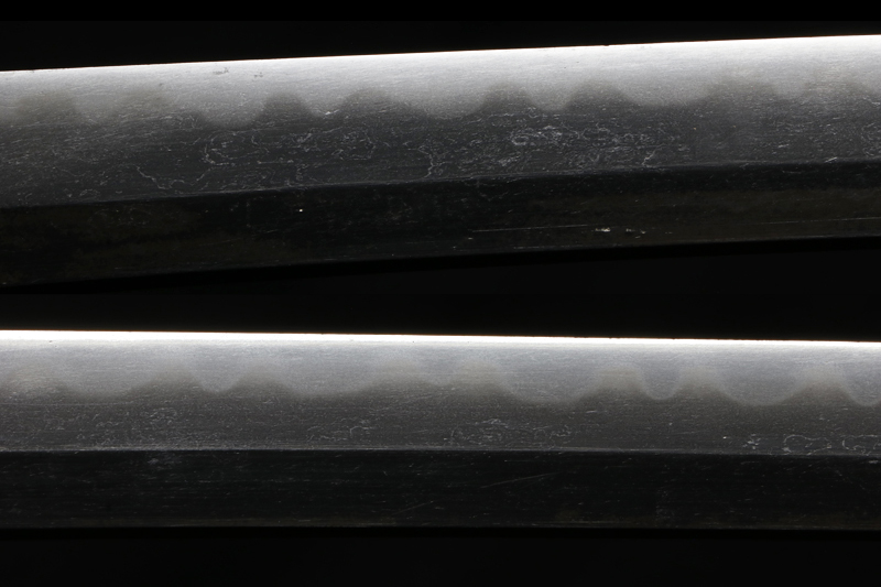 本作、板目肌に覇気の有る互の目を焼いた刀で、流石古刀だけ有って刀身は軽く、抜身の重量も899gです。