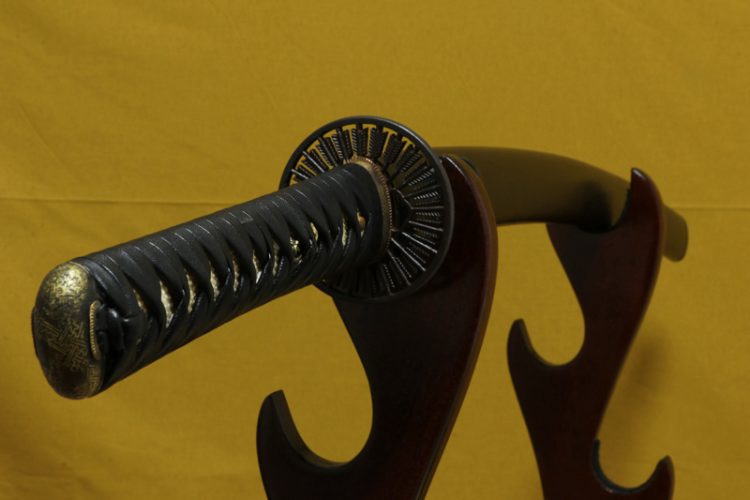 刀身は古研ぎですが、少しヒケが有るくらいです。拵はのコンディションは良く、柄巻は新品に巻替えました。