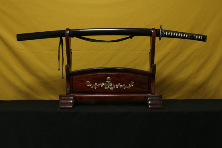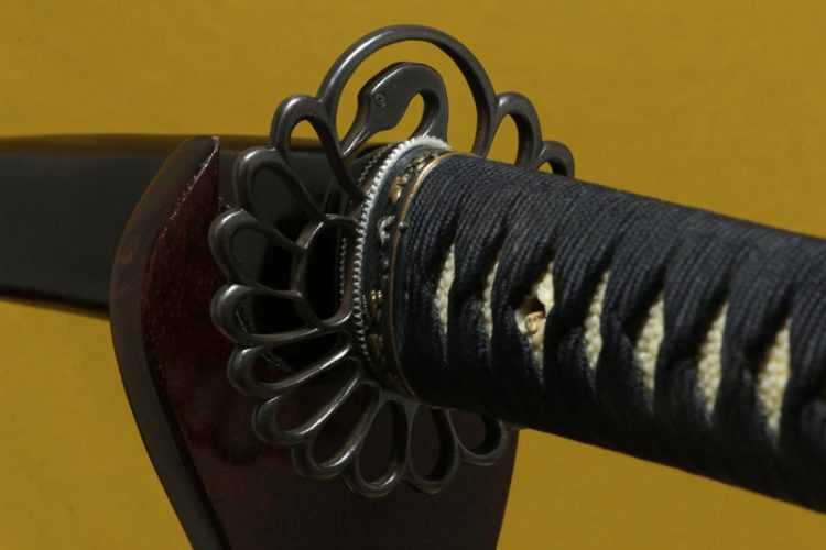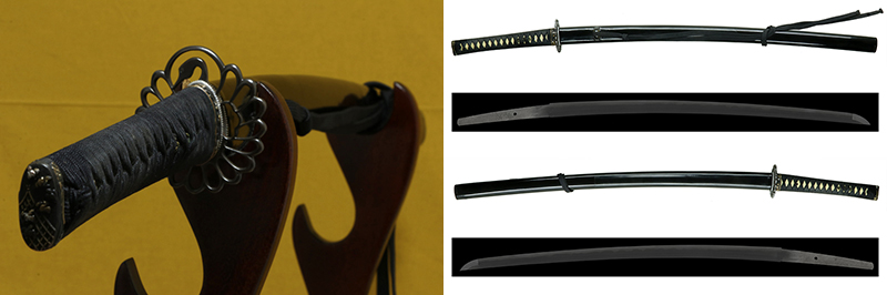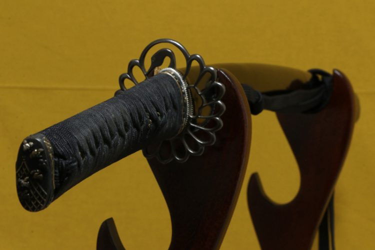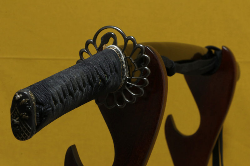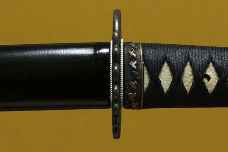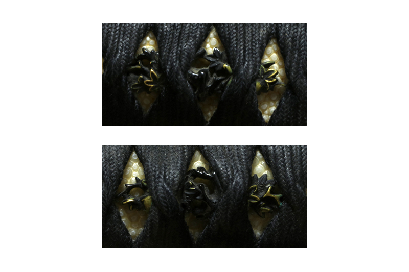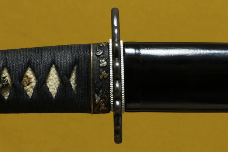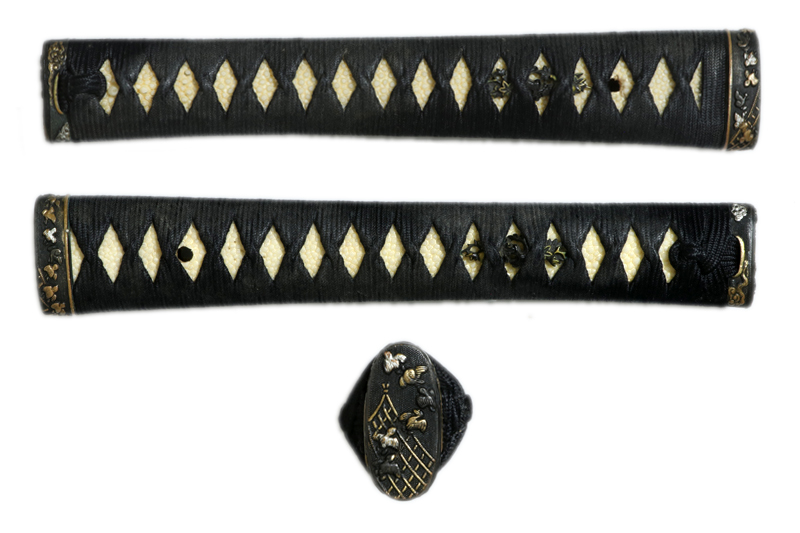 柄(tsuka) :鮫は親粒が付く。柄巻は正絹黒の諸捻り巻。