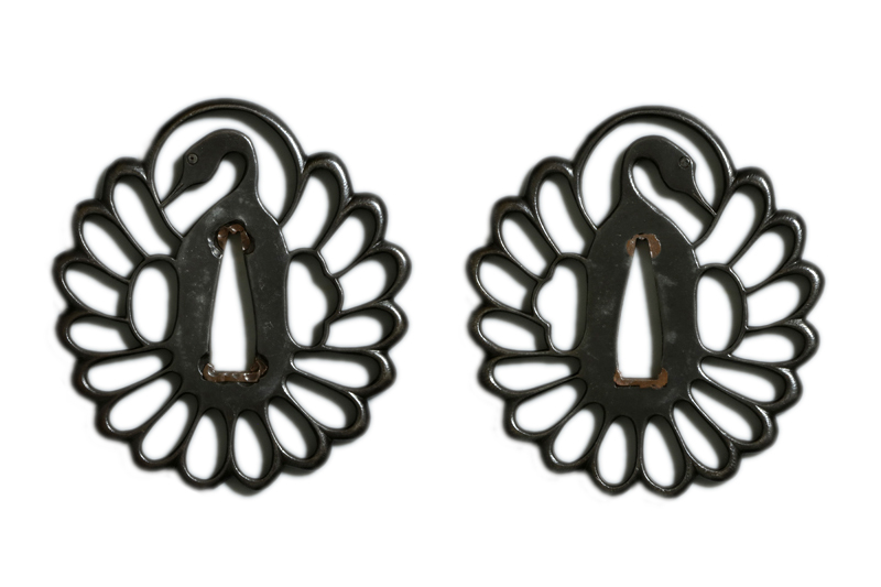 鍔(tsuba) :鉄地鶴丸透かし。