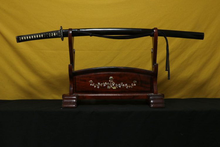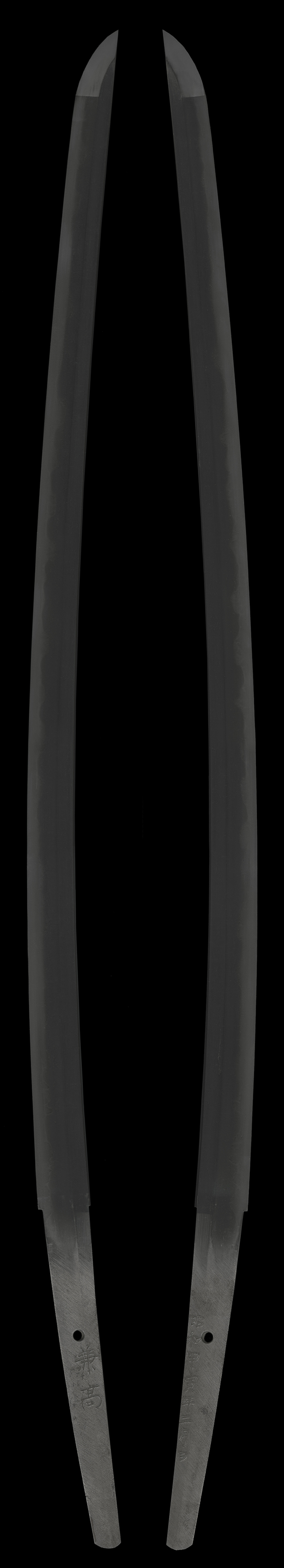 本作は昭和50年(1975年)、兼高刀匠が47歳のときの作品です。よく詰んだ柾目肌を鍛え、その上に沸出来の互の目を焼いた見事な一振りです。刀身の状態は良好で、鍛え割れなどの欠点もなく、拵も良い状態を保っています。ご購入後、すぐに試斬に使用することができます。