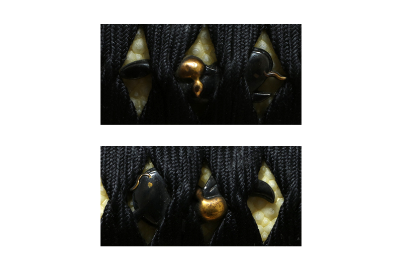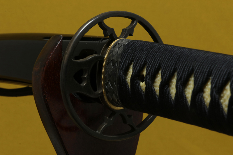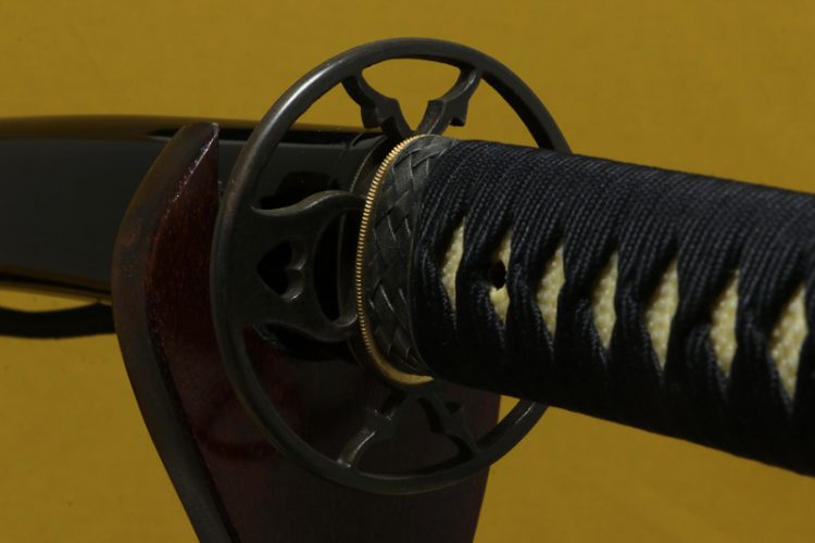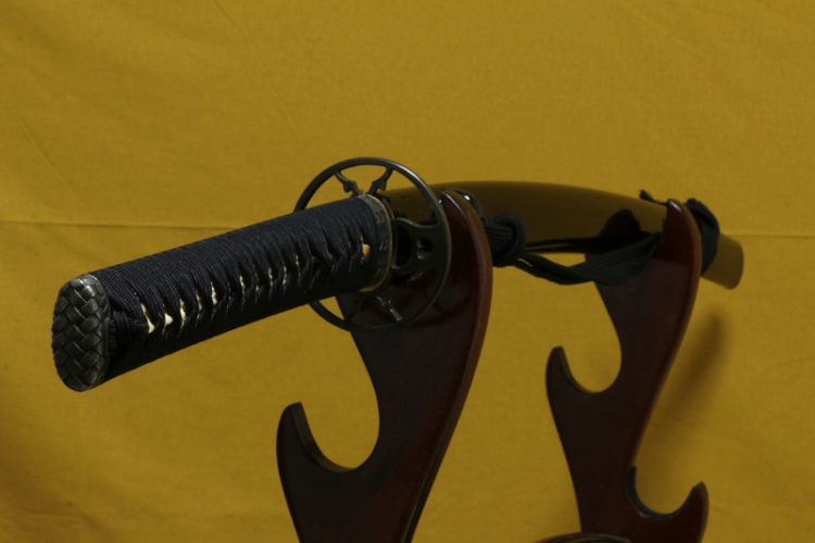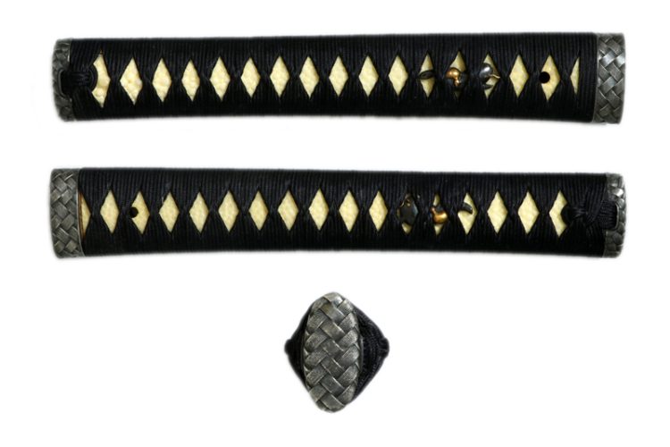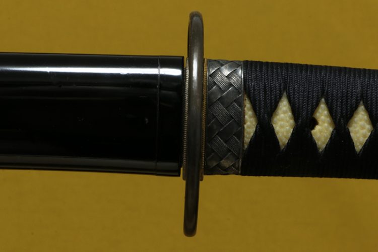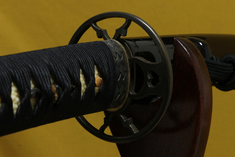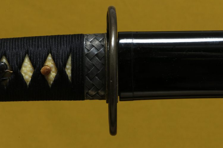 柄(tsuka) :鮫は親粒が付く、柄巻は正絹黒の諸捻り巻。
