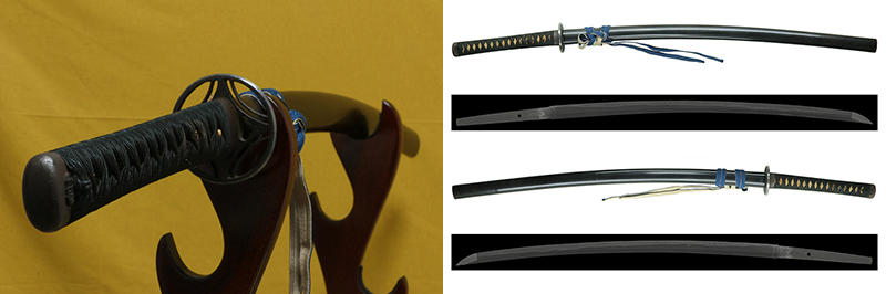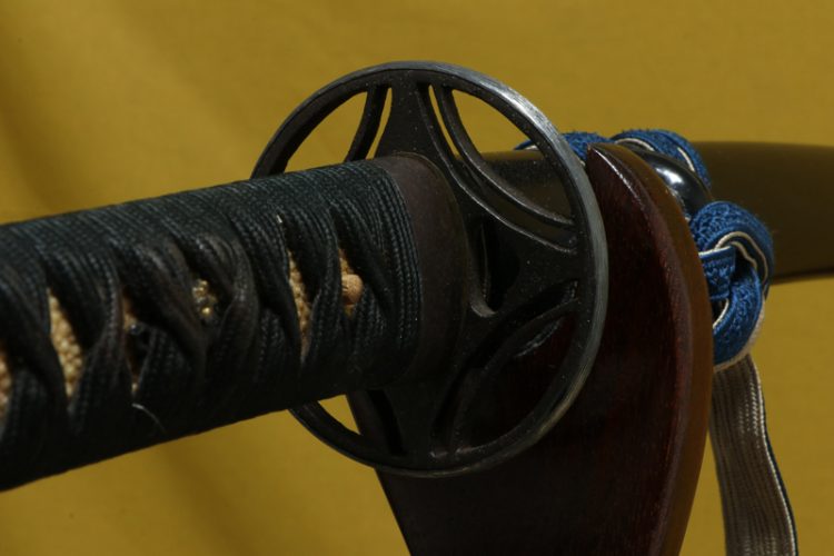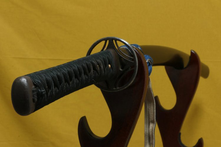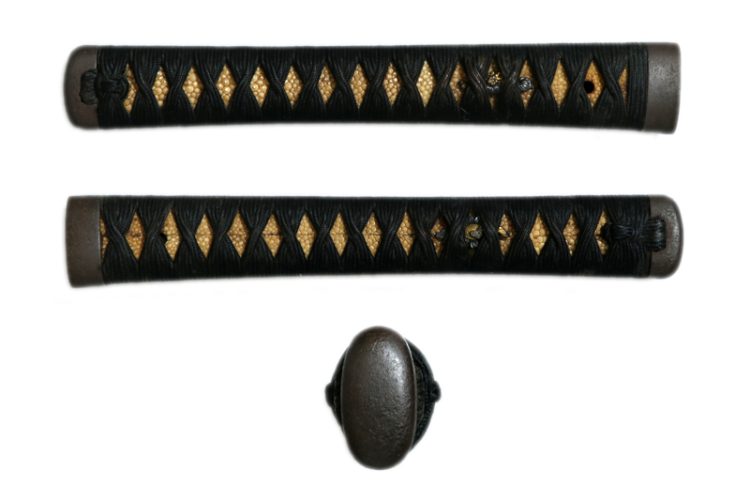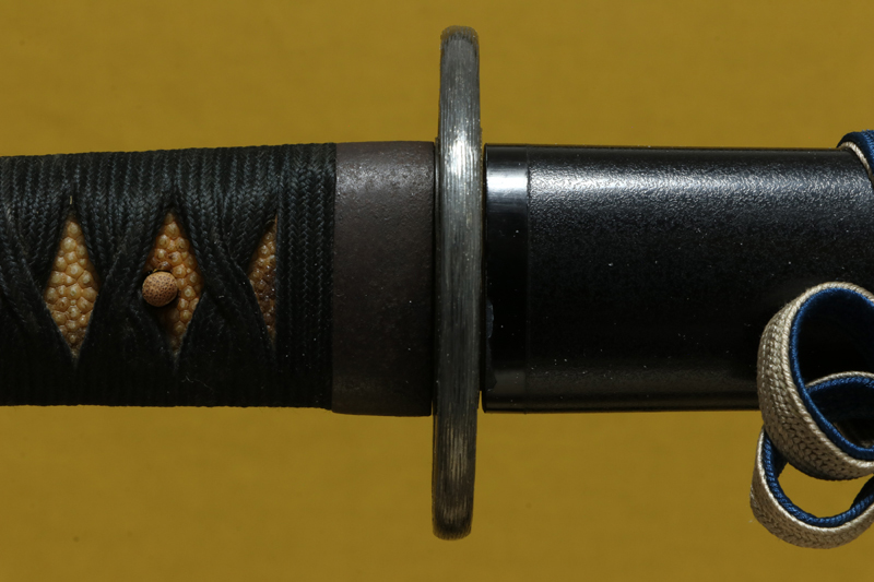 柄(tsuka) :鮫は巻鮫。柄糸は正絹黒の諸撮み巻。