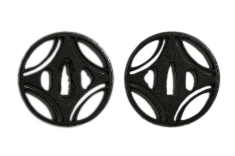 鍔(tsuba) :鉄地糸車の図。