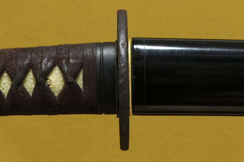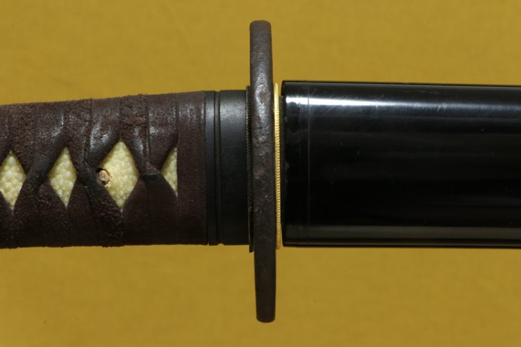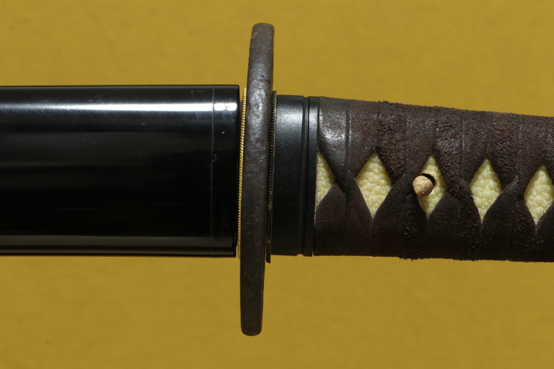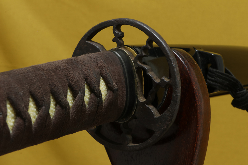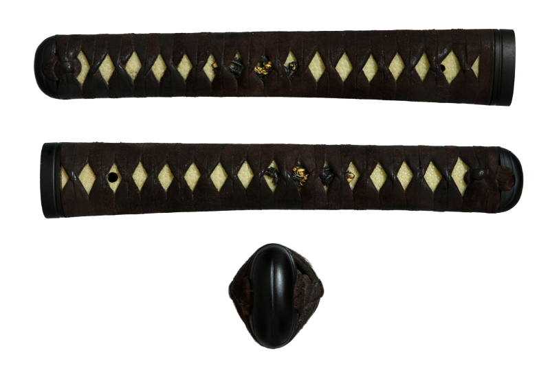柄(tsuka) :柄巻は牛裏革の焦げ茶色。