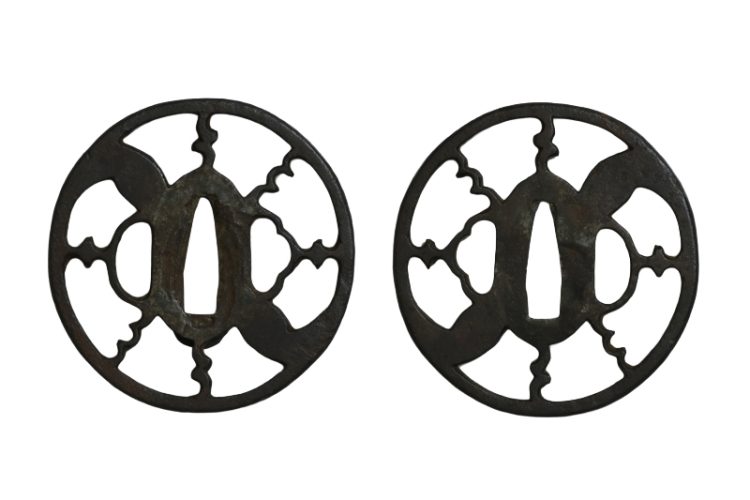 鍔(tsuba) :鉄地雁金透かし鍔(江戸時代)。