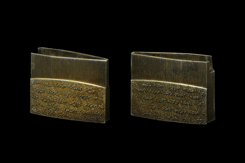 ハバキ(habaki) :銀無垢二重の金鍍金(金が薄くなっています)、上蓋は腰祐乗鑢がかかり、下蓋は縦鑢がかかる。