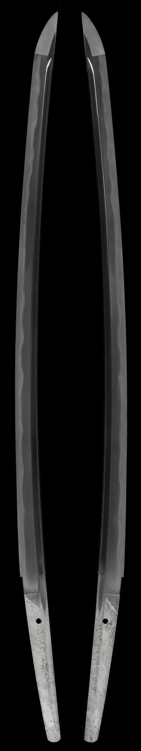 父・榎本貞吉刀匠は月山貞勝の高弟であり、「鍛えの貞吉」と称された逸材です。貞人刀匠も月山一門の鍛えと刃紋を受け継ぎ、特に綾杉肌は見事な出来栄えを示しています。