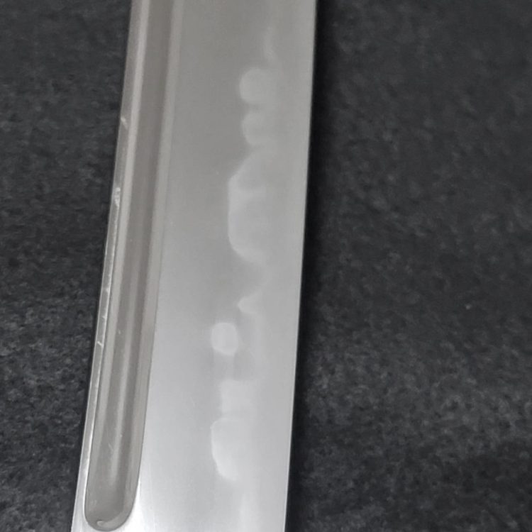 Among the many Kiyomaro-style works by Akamatsu Tarō, none equal this sword in its grandeur, dynamic activity within the hamon, and large kissaki. Furthermore, it bears the rare inscription “Utsushi Kiyomaro” (Kiyomaro reproduction) on the tang, making it an exceptionally valuable masterpiece.