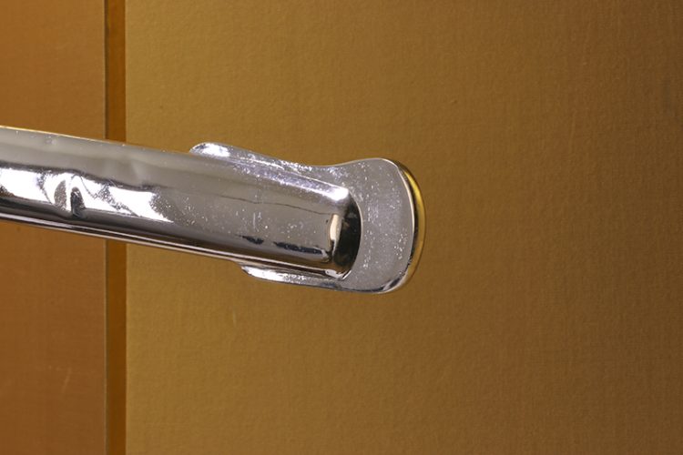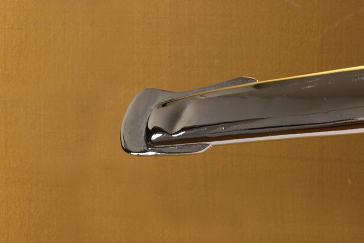 鞘のクローム鍍金に剥がれや錆も無く、柄には家紋が入り、またコンディションが良いです。