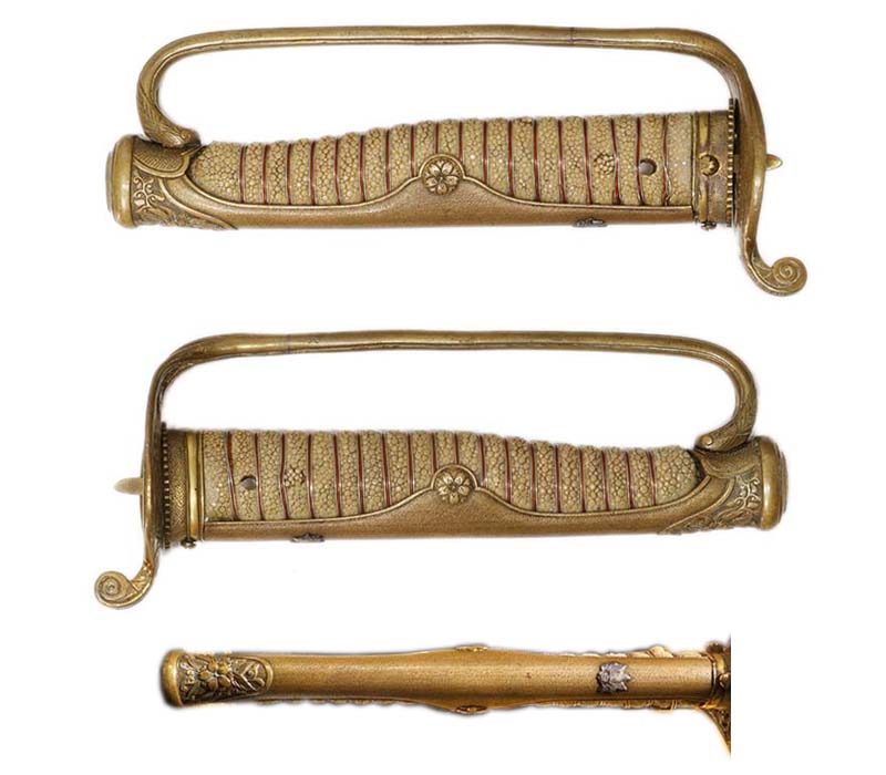 Well-preserved examples of Japanese Army officer two-handed saber mountings are quite rare and highly valuable.