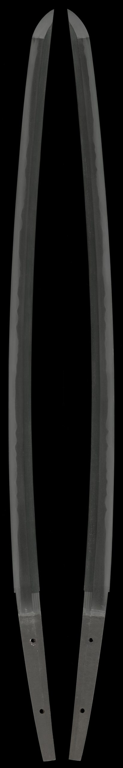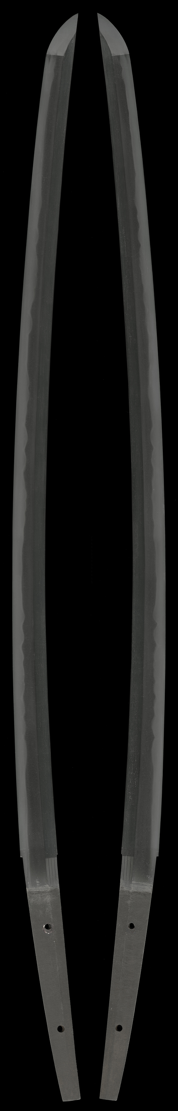 The accompanying military mounting is a Japanese Army officer’s two-handed saber koshirae, used from the late Meiji period until the adoption of the Type 94 guntō koshirae.