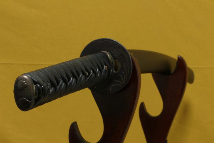 本作は室町時代後期頃に作られた太刀で、長さは74.8cm有ります。茎は加工されていますが区は送られておらず、刀身の長さはオリジナルの状態を保っています。刀身の状態は良好で、傷は有りません。