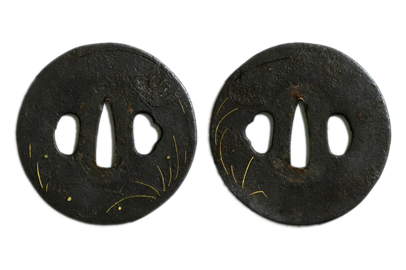鍔(tsuba) :鉄地丸型武蔵野図。