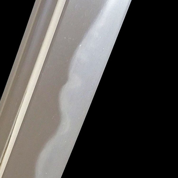 At first glance, the forging of Sadayoshi appears to show tightly packed ko-itame, but closer observation reveals a well-forged and robust structure. Yūsui-shi Sadayoshi was also known for the excellent cutting ability of his blades, and swords made by Sadayoshi are likewise reputed to cut extremely well.