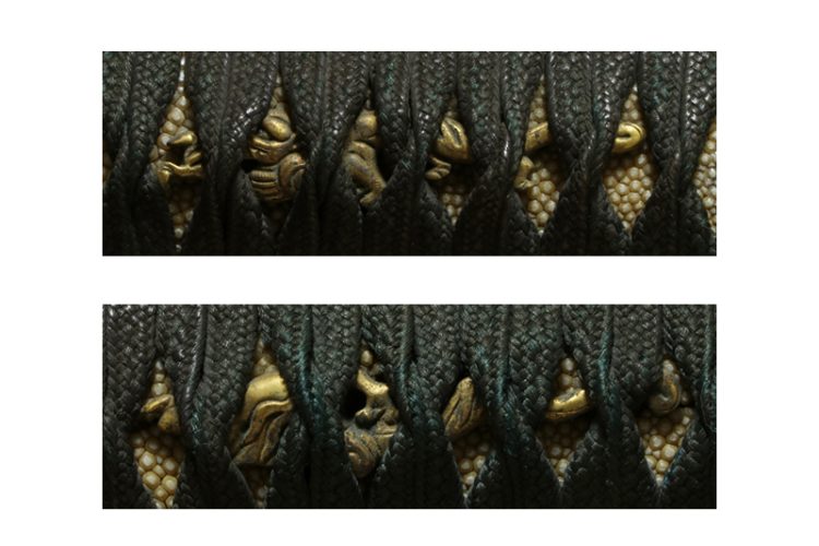 柄(tsuka) :鮫は巻鮫、柄巻は正絹黒の諸捻り巻。