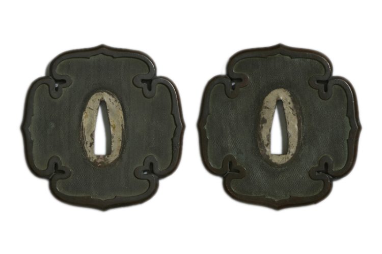 鍔(tsuba) :銀無垢魚子地赤銅覆輪の太刀鍔。