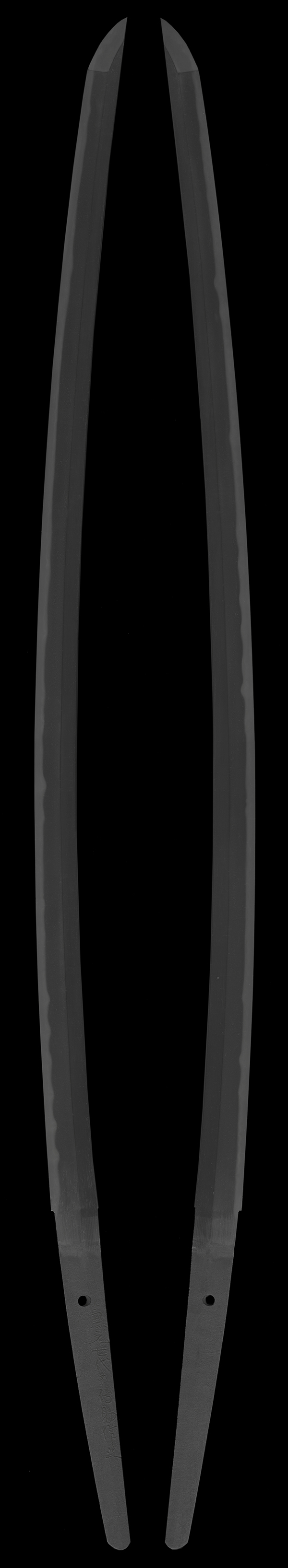 半太刀金具(hantachi-kanagu):素銅石目地半太刀金具。