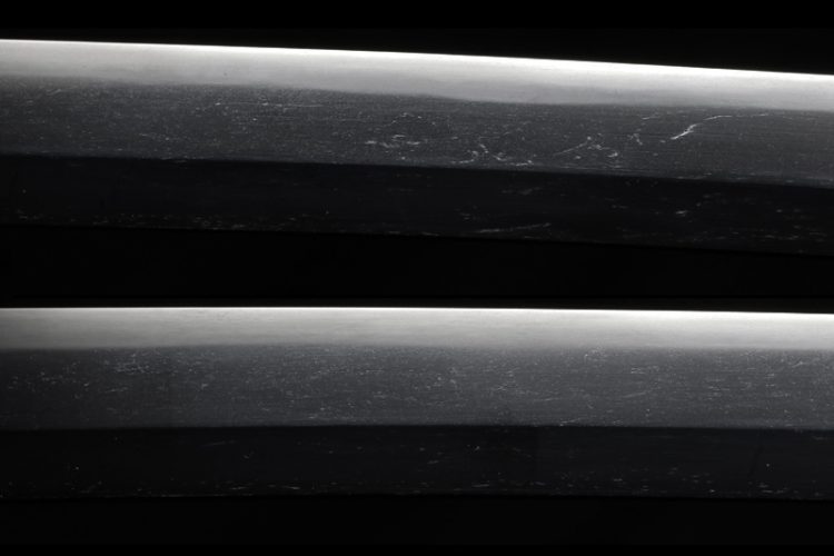 The koshirae (mounting) had deteriorated, so it has been repaired. The tsuka (handle) has been rewrapped with new same (rayskin) and fresh tsukamaki (handle wrapping). The saya (scabbard) is newly made.
