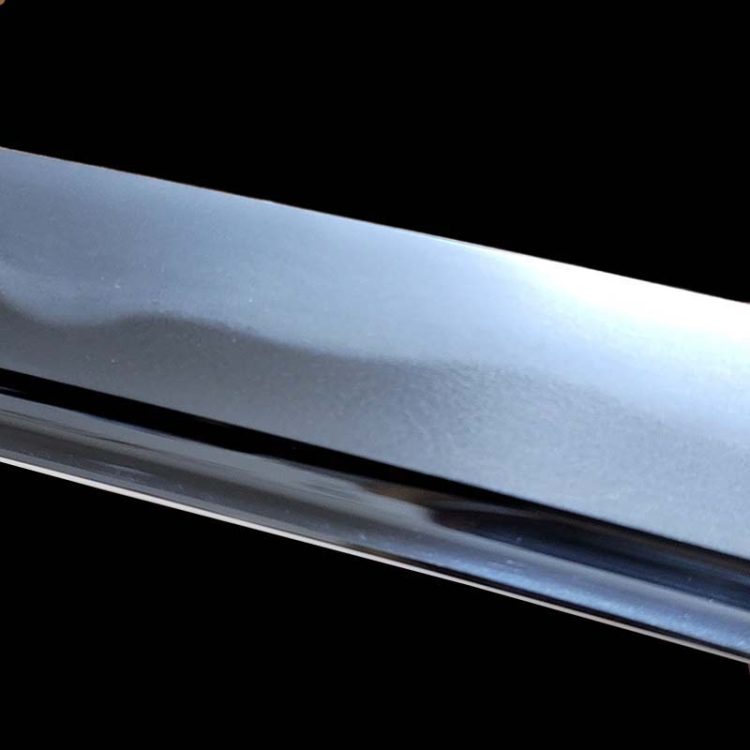 Subtle chikei appear throughout the steel, and a faint nie-utsuri is visible.
