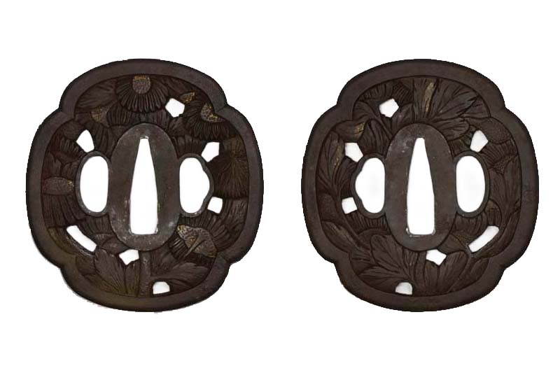 鍔(tsuba) :鉄地木瓜形菊の図。