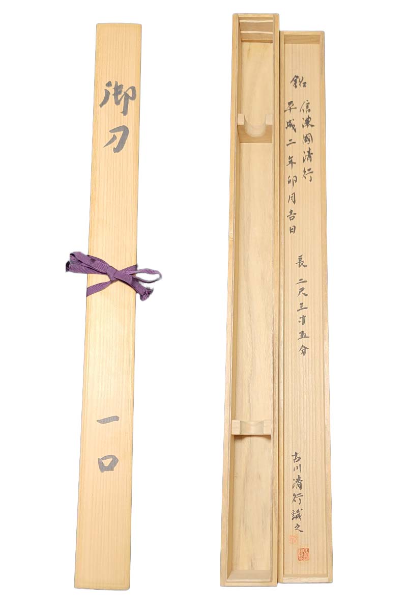 Also included is a paulownia storage box bearing an inscription handwritten by swordsmith Kiyoyuki himself.