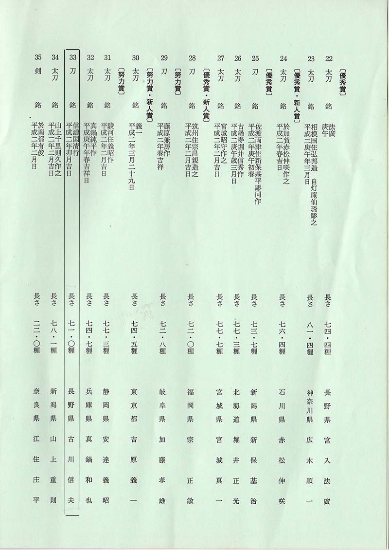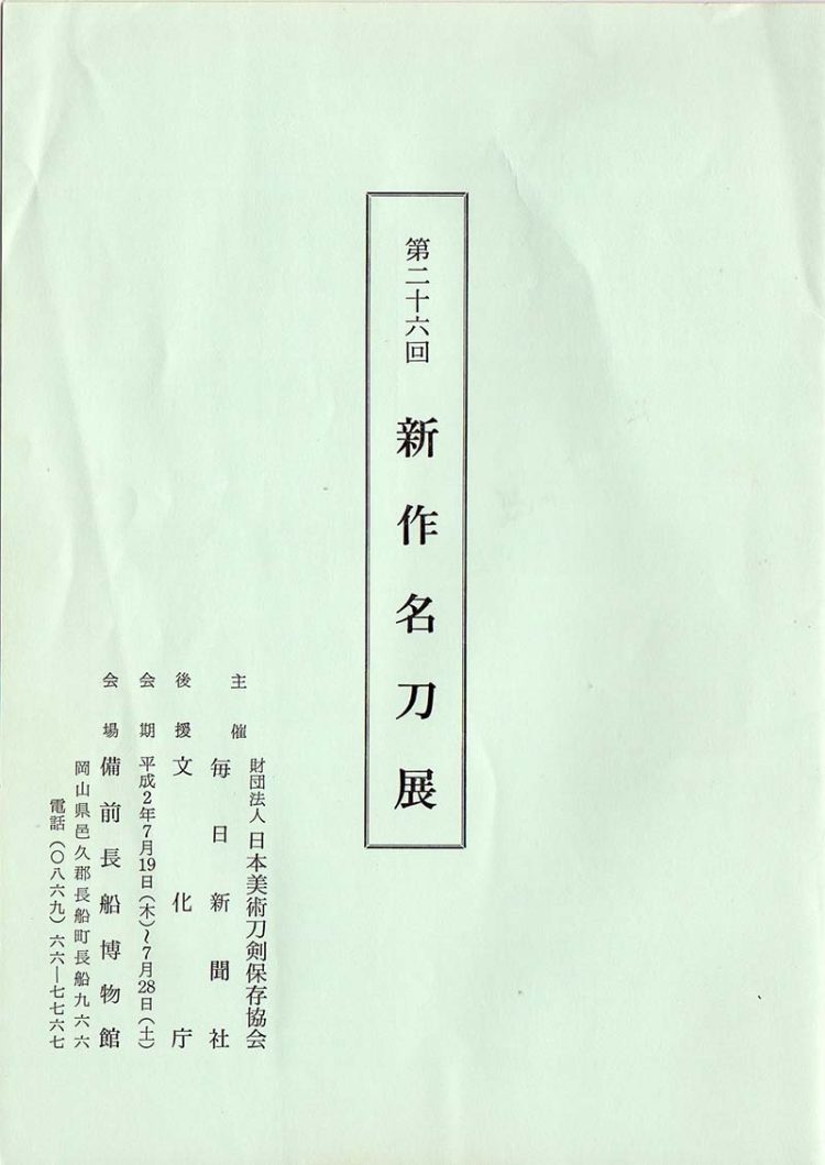 本作は、平成2年新作名刀展において努力賞を受賞した刀です。