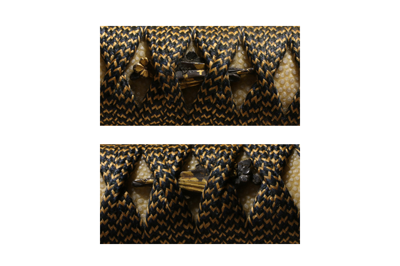 柄(tsuka) :鮫は短冊、柄糸は正絹変わり糸の諸摘み巻き。