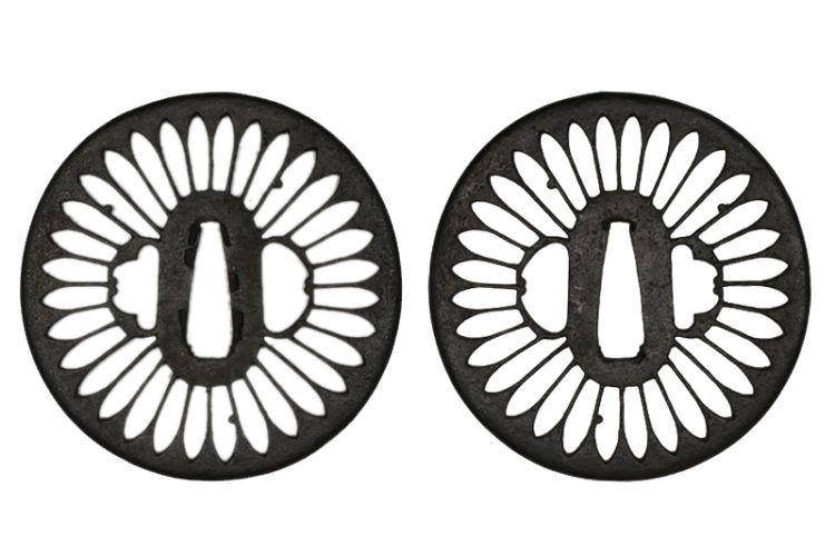 鍔(tsuba) :鉄地菊花透かし。