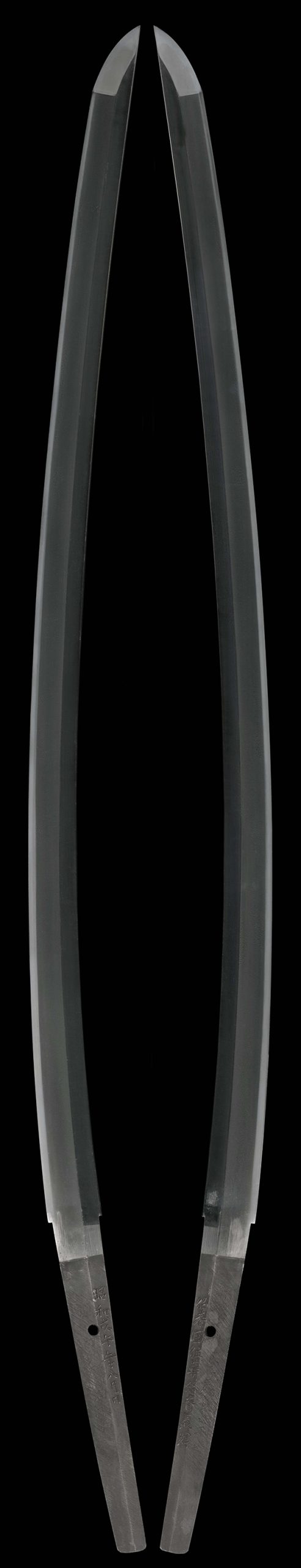 The hamon is a ko-gunome in suguha style, with well-defined ko-ashi entering the temper line.