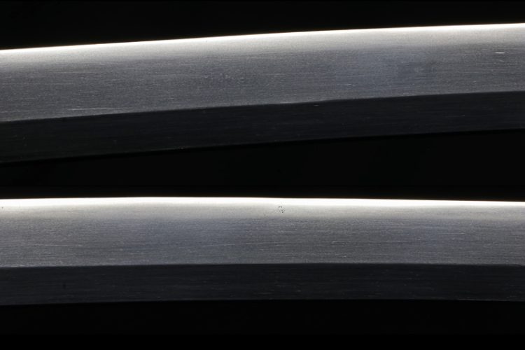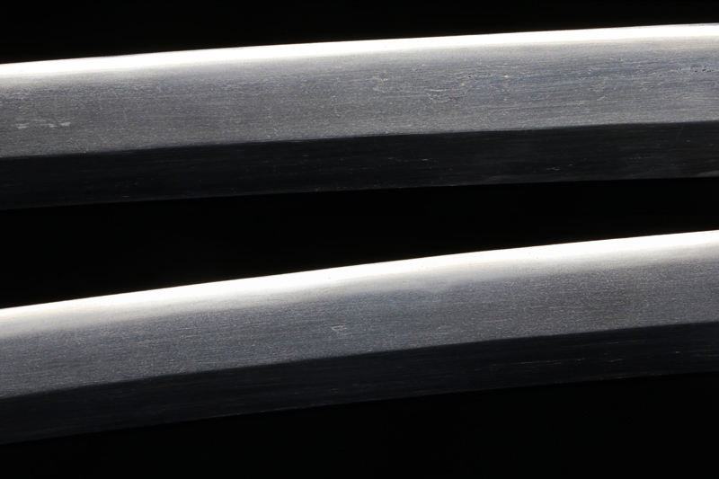 The blade is in an old polish and appears somewhat cloudy, but it can be beautifully restored with a fresh polish. Even in its current state, the jihada and hamon can be seen clearly.