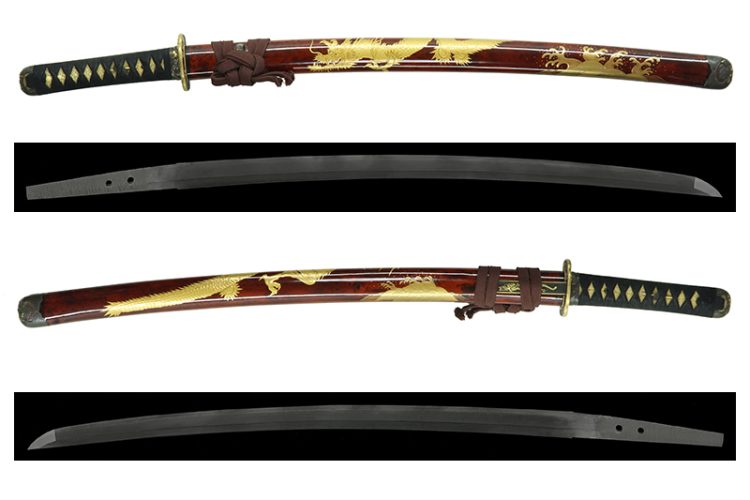 The koshirae features high-quality fittings, and the saya is magnificently decorated with gold maki-e of clouds and dragons.