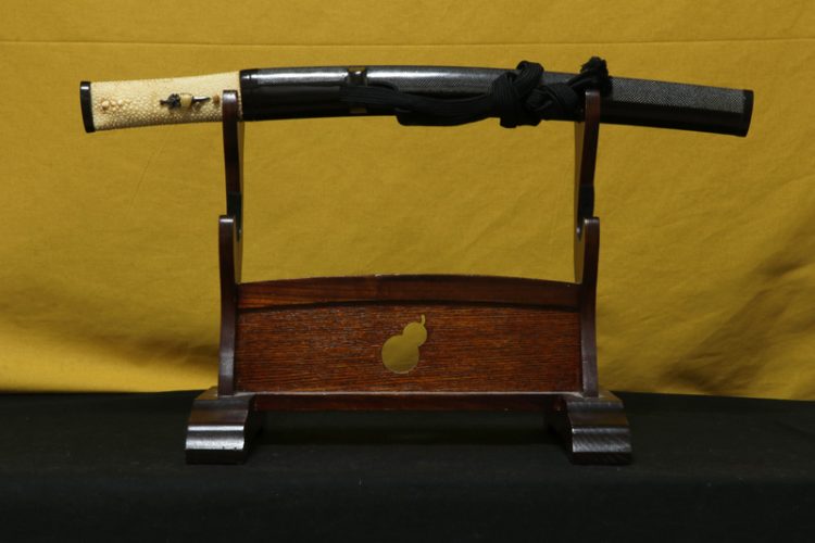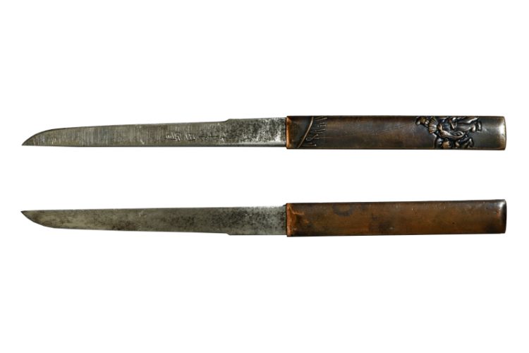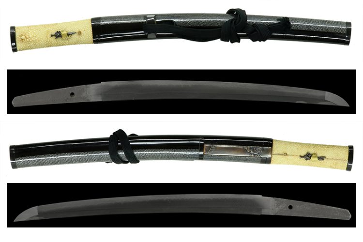 The koshirae is an aikuchi mounting from the late Edo period, with an elegant and distinctive kawari-zaya (decorative scabbard), also in very good condition.