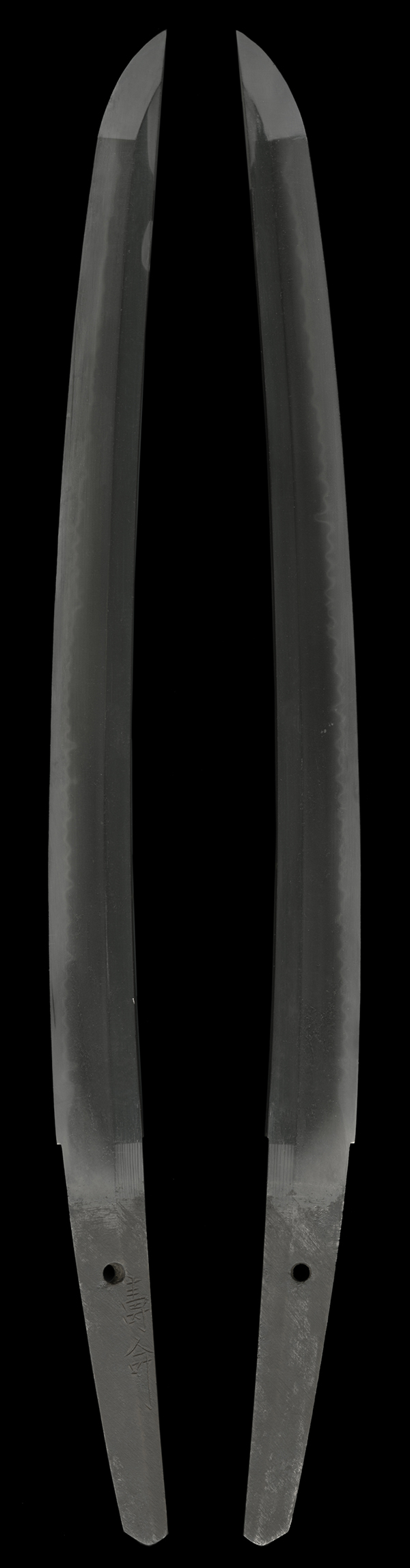刃紋は尖り互の目、砂流しかかる。釯子は乱れ込み小丸に長く返る。