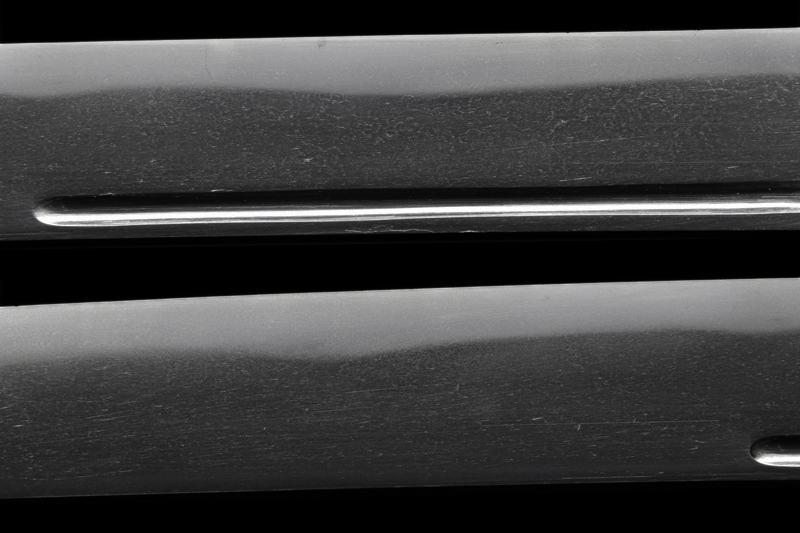 越前國次、江戸時代初期・慶長頃の越前下坂派の鍛冶。貴重刀剣の証書には「越前國次」としか書かれていないが、慶長頃の越前で國次を名乗った刀工は、山城大掾藤原國次しか居ません。刀身は初代越前康継のような出来で、良く詰んだ板目肌に、沸出来の湾れ刃を焼いた素晴らしい脇差です。
