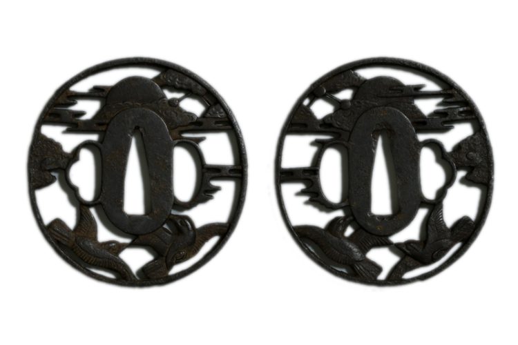 鍔(tsuba) :鉄地月と雁の図透かし。