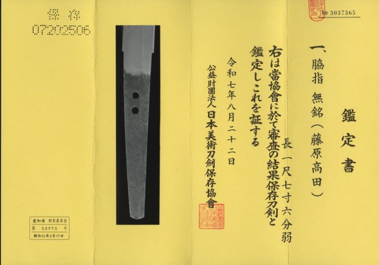 本作は、江戸時代初期・寛文頃の藤原高田の刀工の作品です。