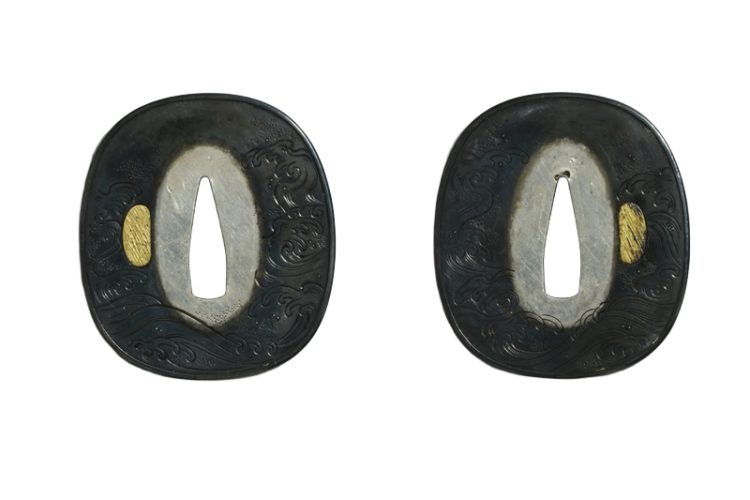 鍔(tsuba) :銀無垢波の図。