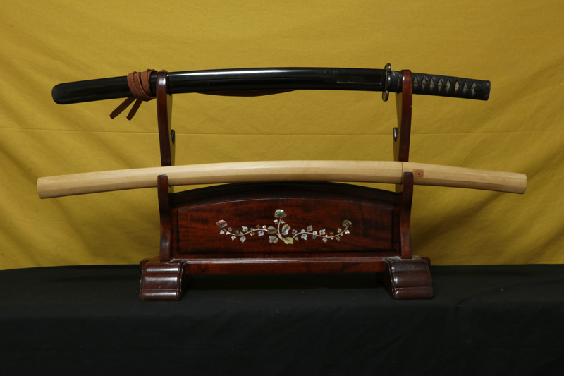 柄(tsuka) :鮫は巻鮫、柄糸は正絹黒の諸撮み巻。