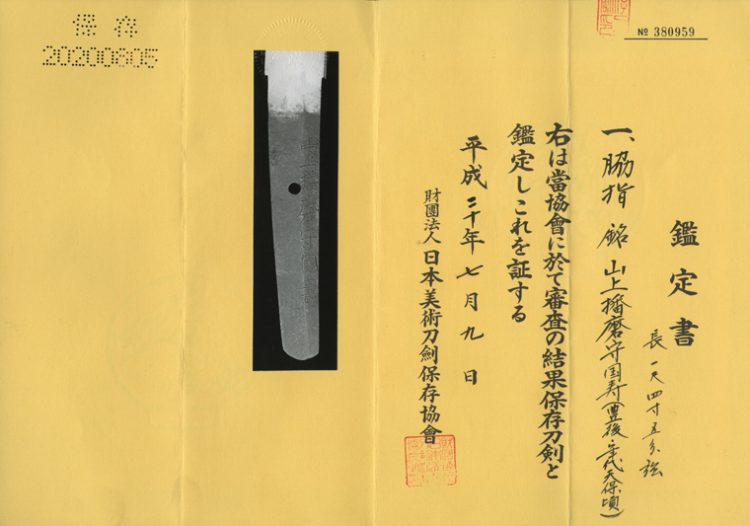 Yamagami Harima-no-kami Kunitoshi was a swordsmith active in Bungo Mori during the late Edo period. His signatures (mei) include inscriptions such as “Bungo Mori-jū Kunitoshi,” “Hōshū Mori-jū Kunitoshi,” and “Harima-no-kami Kunitoshi.”