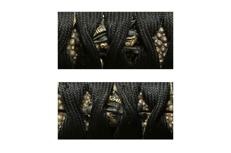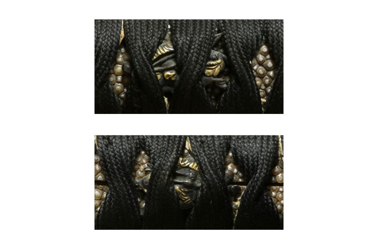 柄(tsuka) :鮫は巻鮫、柄糸は正絹黒の諸撮み巻(無料で巻替ます)。