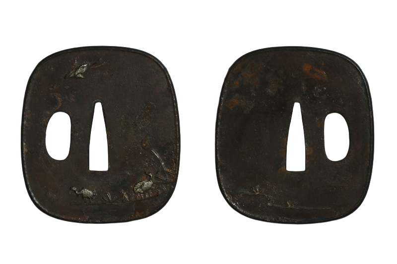 鍔(tsuba) :鉄地角丸形赤銅覆輪鷺の図。
