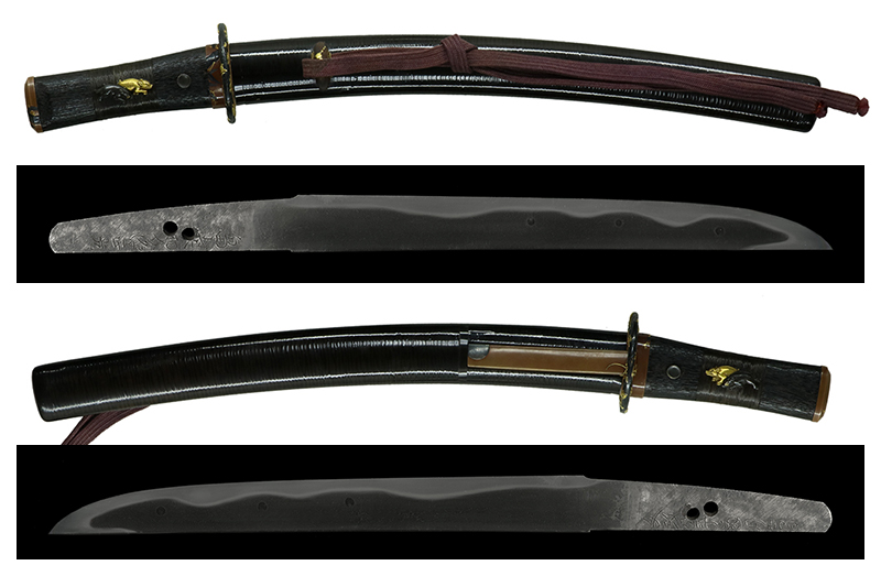 平造り庵棟、身幅重尋常、反り無しふくら程良く枯れる。茎は生で化粧鑢がかかり、茎尻は栗尻。