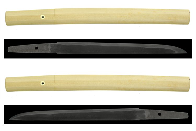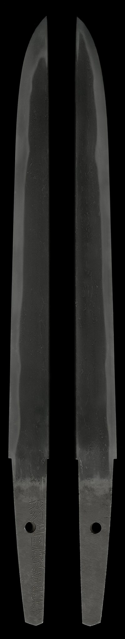 平造り庵棟、身幅重尋常、無反りふくら枯れる。茎は生で筋違い鑢がかか、茎尻は浅い剣形。