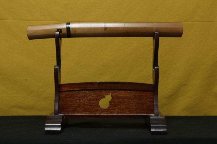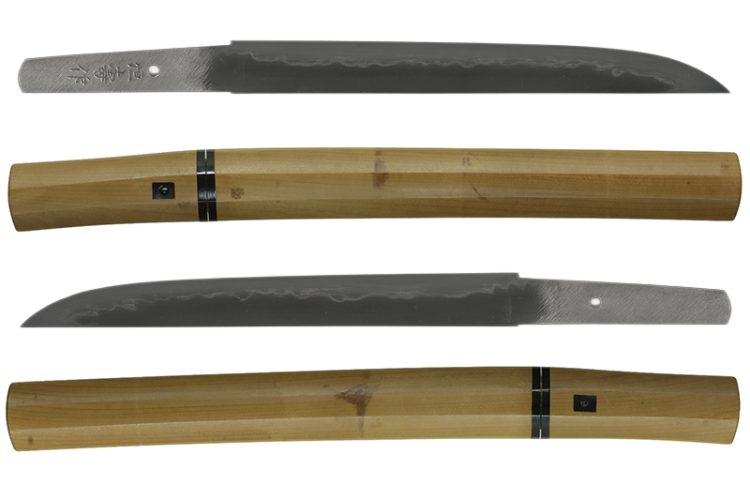 平造り庵棟、身幅やや太く重尋常、無反りふくら程良く枯れる。茎は生で筋違い鑢がかかり、茎尻は栗尻。
